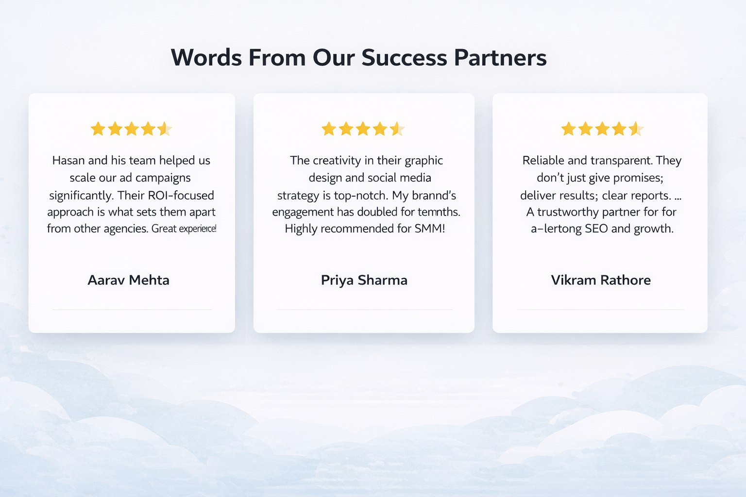 Results depend on the service. SEO usually takes 3–6 months, while Google Ads and Social Media Ads can start generating leads within a few days.